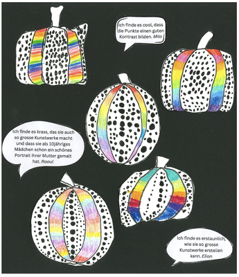 Am ersten Schultag dieses Schuljahres haben alle Schüler:innen und Lehrpersonen einen Strich zu diesem Gemälde beigetragen. Kunst ist ein Prozess. Manchmal kommen neue Ideen hinzu und die Kunst entwickelt sich im Verlauf des künstlerischen Tuns weiter. Auch dieses Bild wird sich im Verlauf des Schuljahres weiterentwickeln und wachsen. Nach allen Ferien wird jeweils etwas hinzukommen. Wir sind gespannt auf diesen Prozess und wie unser Kunstwerk am Ende des Schuljahres aussehen wird.